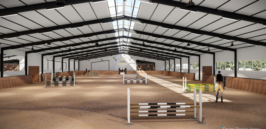 The development represents a complex equestrian facility construction project in which all functions operate in a coordinated, interdependent manner. The concept includes indoor and enclosed riding arenas, outdoor and indoor show jumping arenas, a stable building with multiple box units, as well as a complete internal circulation and logistics infrastructure. Equestrian interior design throughout the project serves clear spatial organization and the distinct separation of human, horse, and operational functions.
