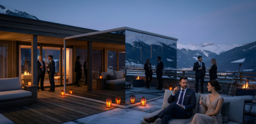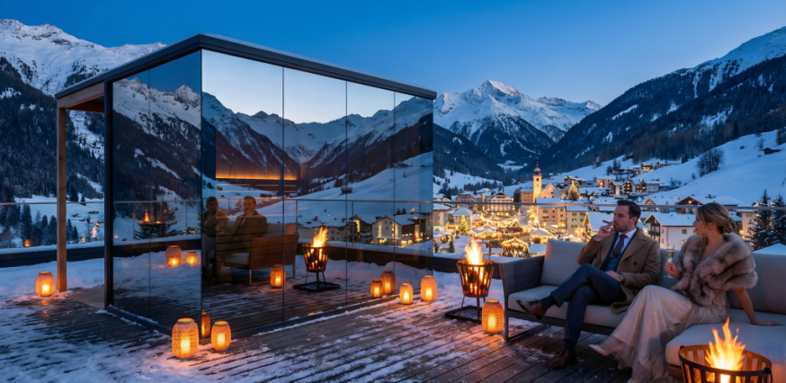 One of the most important innovations of the design sauna lies in the way it adapts to its surroundings. During the day, the mirrored surfaces reflect the landscape, allowing the panorama sauna experience to remain an organic part of the built environment. In the evening, the character of the space transforms: warm interior lighting and refined material choices create a protected, tranquil atmosphere. This innovative approach is not about visual impact, but about ensuring that the modern sauna house functions in a balanced and sustainable way over the long term.